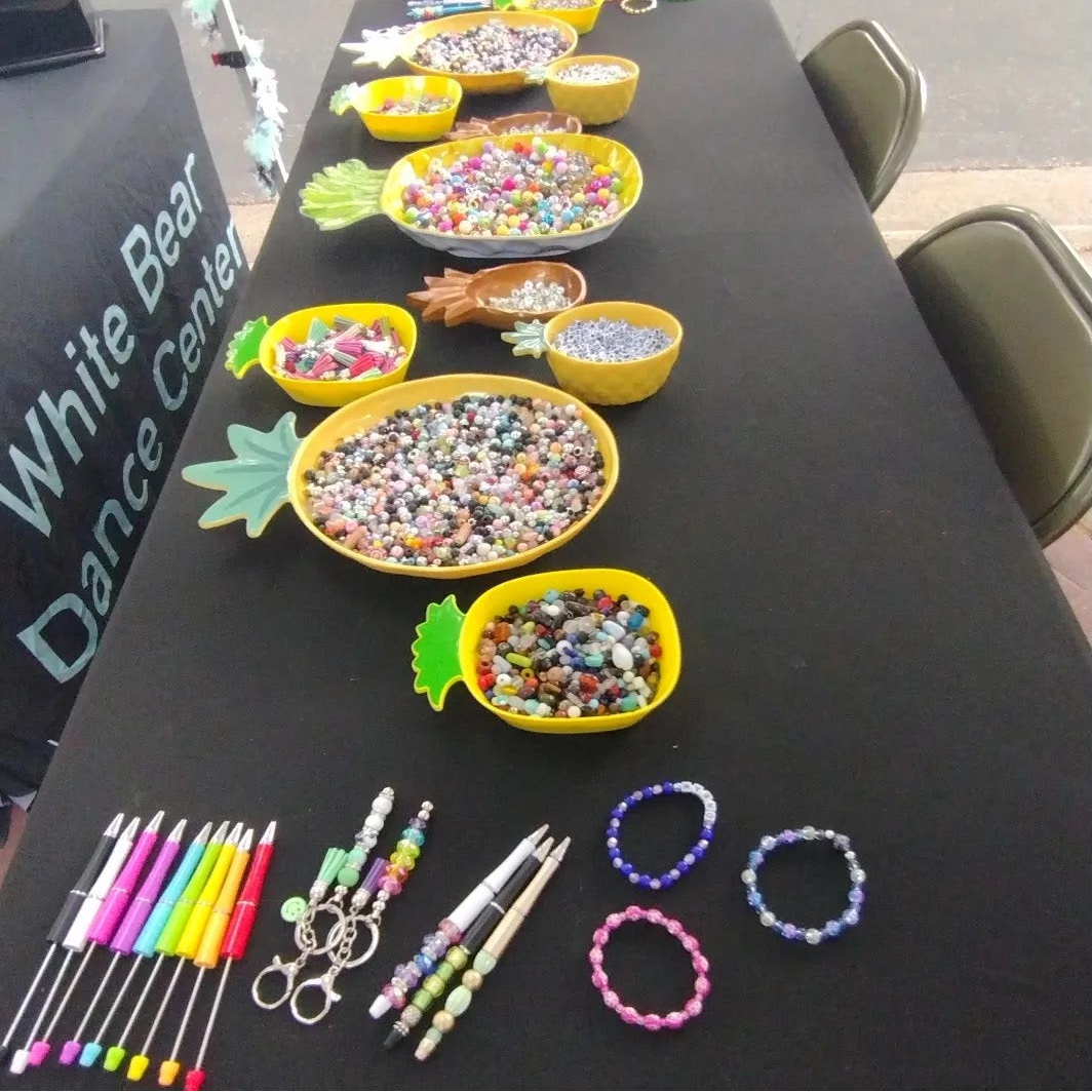 It's a curated, elevated creative experience where guests design their own jewelry using vibrant, thoughtfully selected beads. Whether you're making stretchy bracelets, earrings, necklaces, pens, or keychains, the focus is on self-expression and connection.
